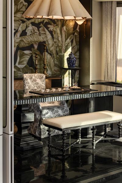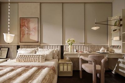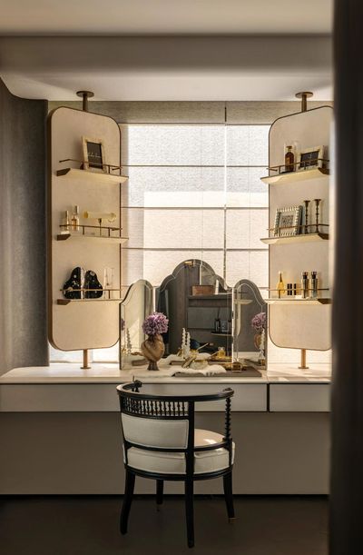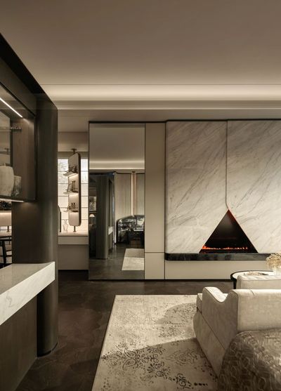 壁炉里跳跃的火光,为空间晕染出奢华又温暖的氛围。专属的衣帽间与梳妆台,是她私藏优雅与从容的序曲,一器一物在暖光浸润下,静默诠释着独属于她的品味与魅力。