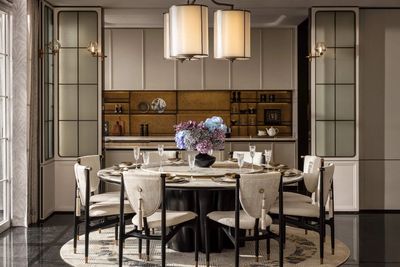 LDK一体化设计,搭配大面积的落地窗,让空间通透感翻倍。圆形餐桌搭配黑白餐椅,流苏的点缀尽显复古精致。吊灯散发着柔和暖光,恰似傍晚时分的余晖。于万家灯火中,觅得一处专属天地,收藏着一日三餐的温馨时刻。