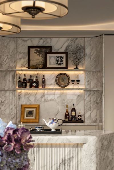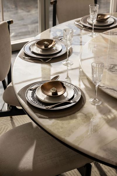 纯净似云的白色沙发,承托着松弛的每一刻。黑色铁艺与白色交织,搭配带有复古花纹的黑色家具,于简约线条里,悄然漾出低调奢华与细腻质感。邀三五知己小聚,共品人间清欢,闲谈笑语融于每一个日常。
