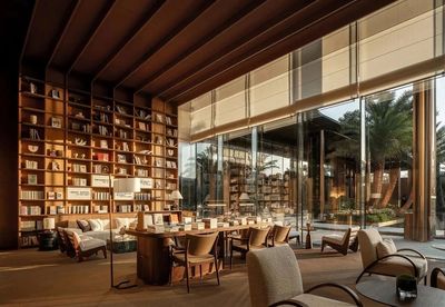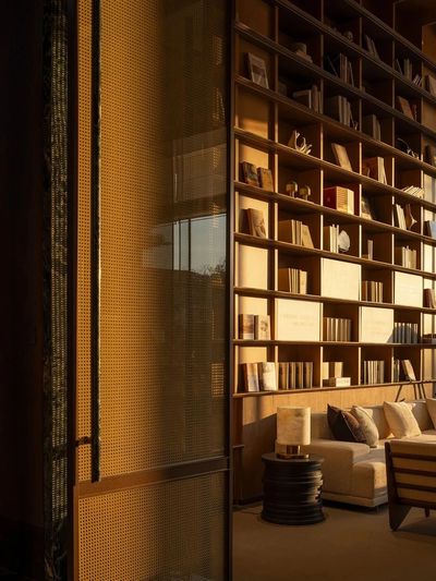 书架承担了空间背景的功能,艺术品与藏书共同营造出轻盈而丰盈的视觉感受。整体布局简约而不失度假气息,延续三亚特有的闲逸氛围。