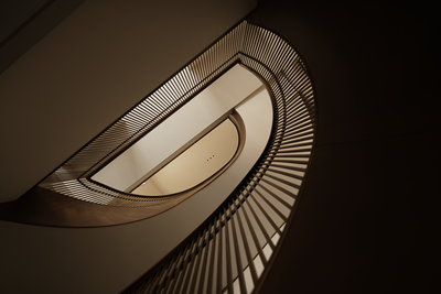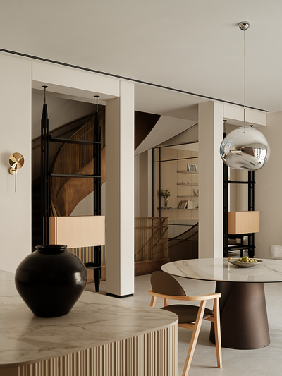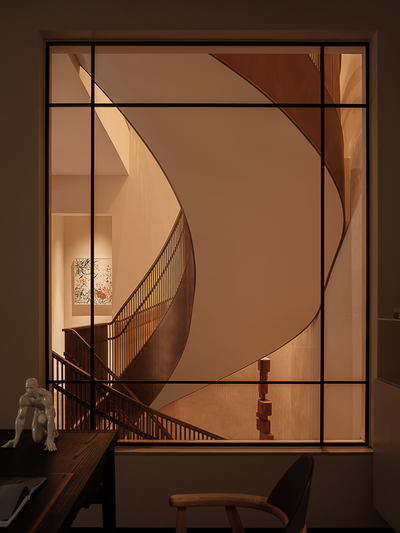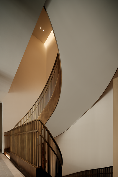 空间布局的核心是“流动”。如雕塑般优雅旋转的楼梯,不仅连接了功能区域,其曲线亦暗合了建筑整体的韵律。