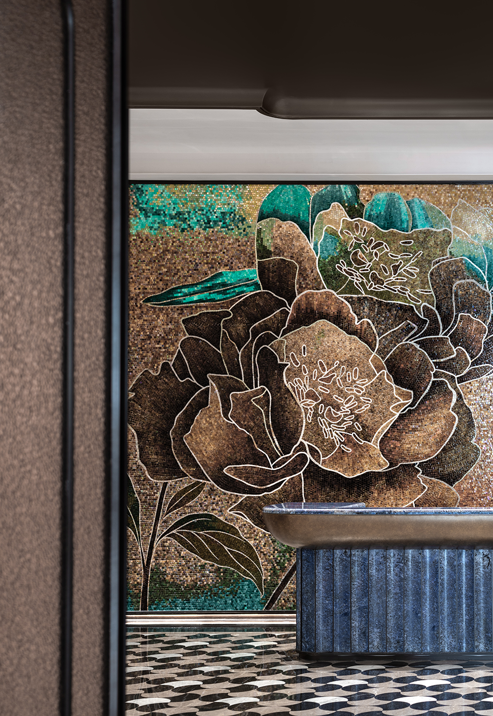 On the wall near the balcony, we applied a deep blue wallpaper with a landscape courtyard motif, extending a sense of poetic atmosphere in the mind.