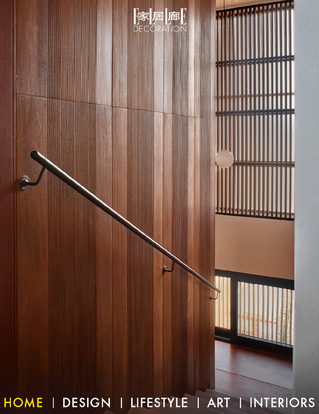 同样的工艺精神也延续至室内,大量温润的柚木与杉木被运用在地板、护墙、门与定制家具之中,与肌理各异的墙面、玻璃与布艺共同组合成一片柔和的秩序。