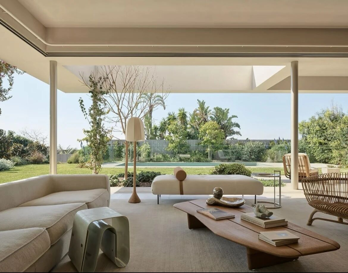 设计。客厅通过大面积滑动玻璃门与花园连接,实现室内外无缝对话。
