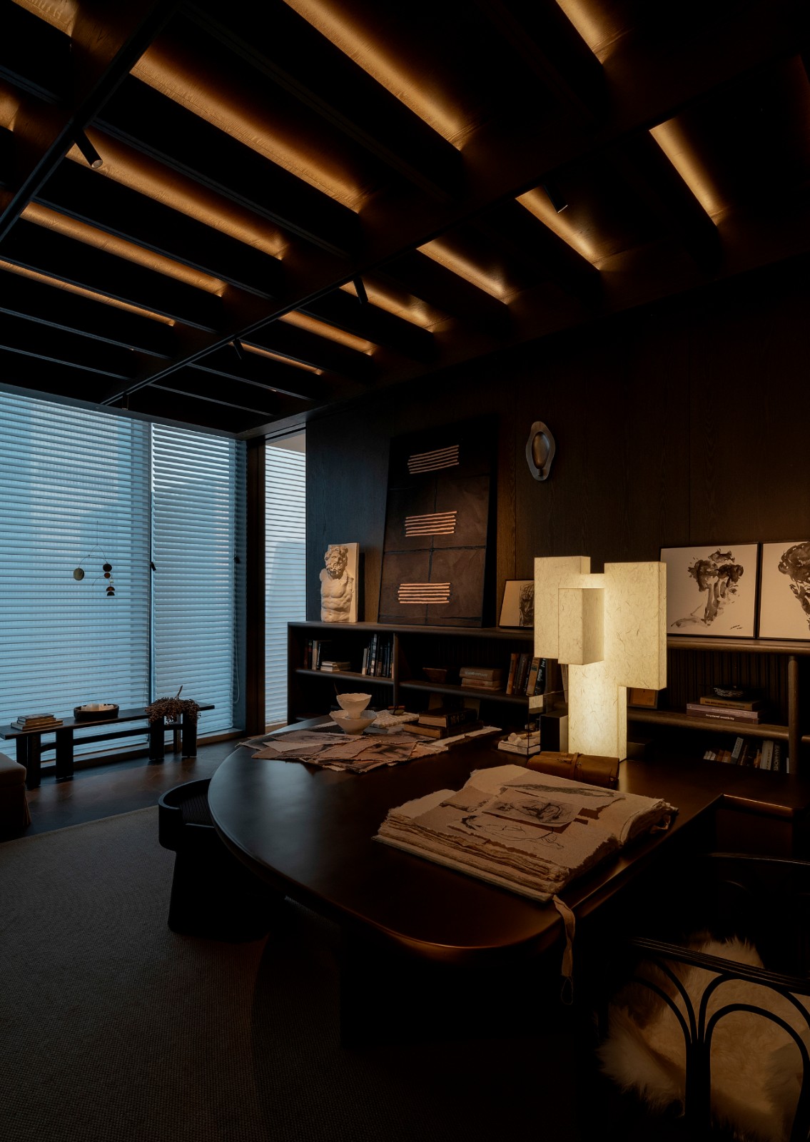 利用多层立体采光的建筑优势,让光影能巧妙的随自然变幻在厚朴的室内空间里,投射出美好的温暖瞬间。