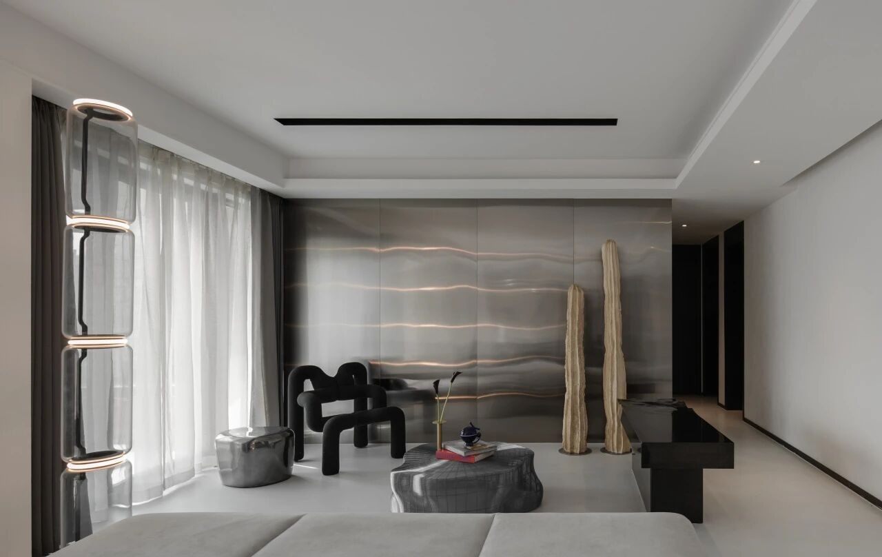 柜体以沉默的姿态沿墙伸展,光洁的立面之下,是生活余温的归处。