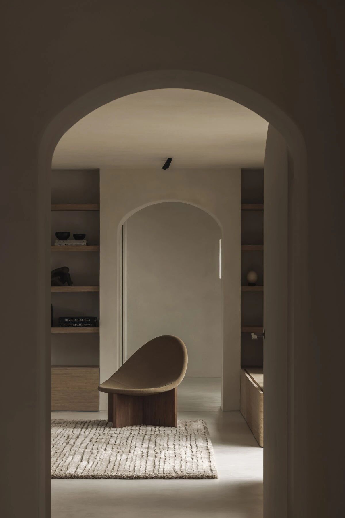 The property is located on Nuñez de Balboa street, in one of Madrids most classic and elegant neighbourhoods. The building in which it is located has a brutalist style, with rigid facades and an independent and monochromatic colour palette, which inspired De la Villa Studios to create spacious, open and interconnected spaces in the residence.