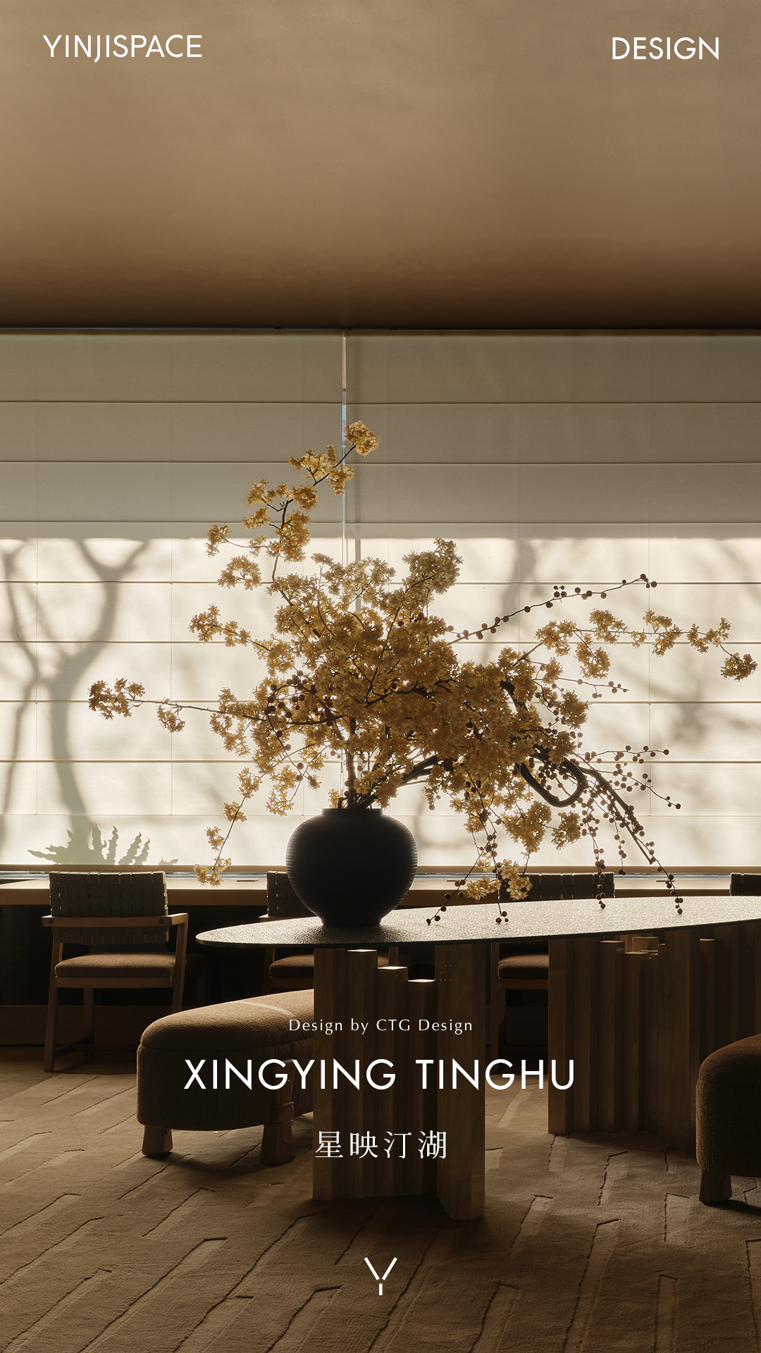 空间的转化亦是心境的转换,轻阖书页,从观景露台踱至品茗一隅,心境随场景一同沉淀。深调茶桌搭配纤细金属悬灯,一沉一扬间勾勒独特格调;暖光漫溢,苔藓微景静缀一旁,带来了野趣也净化了空气。