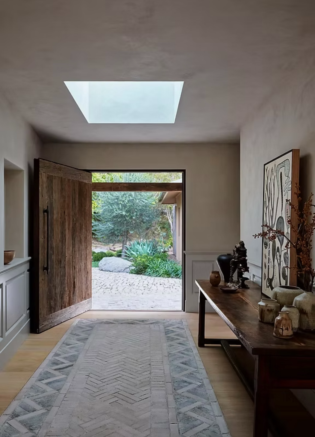 展厅入口礼序暗藏HWCD对仪式感与私密性的双重考量,蜿蜒动线如同艺术叙事序章,手工肌理的大地色墙面温润有质感,搭配克制精准的光影设计,仅以几束射灯照亮沿途大理石与陶瓷流水摆件,水流潺潺、光影斑驳,既铺垫高贵雅致的艺术仪式感,也引导观者褪去喧嚣、沉浸美学语境,为后续体验做好铺垫。