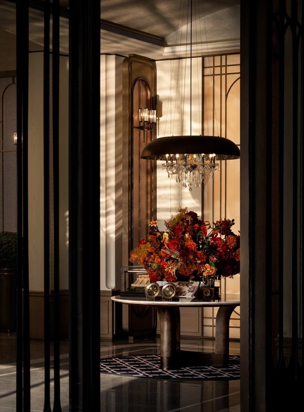 真正的传承,并非符号的堆砌。步入前厅,两侧的艺术玻璃屏风与拱券,并非对石库门的复写。它是一次精炼的“转译”——从山花墙的轮廓中提取线条,以香槟金的现代笔触勾勒,借玻璃的通透邀请光自由穿行。