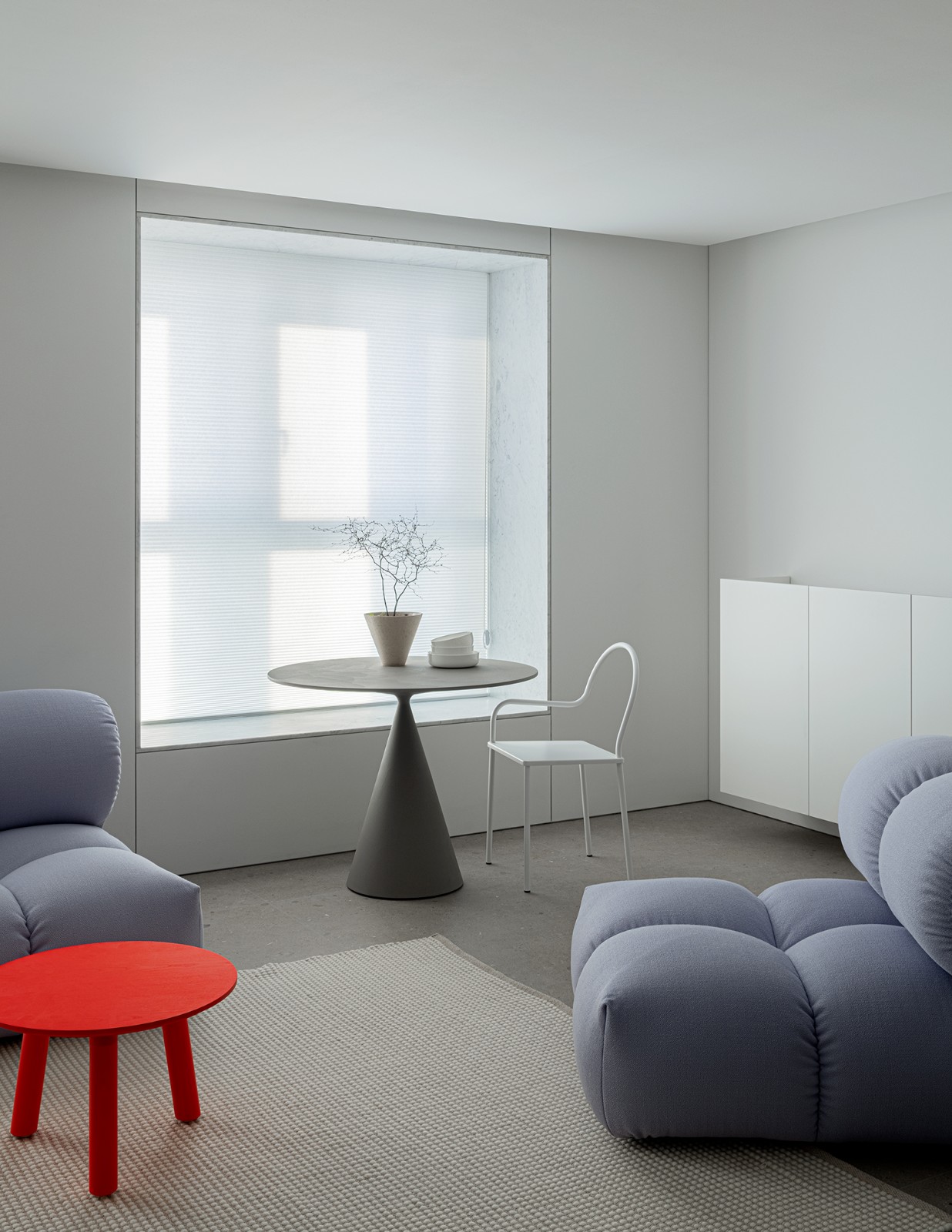 公共区是半公共区,由14英尺长的桌子和10英尺长的灯光所界定。从街道上看,穿过实心钢板和大型玻璃面ç,餐厅里最私密的区域是餐厅。空间是分开的公共与钢铁爱好者墙。天然雪松木条天花板继续向外延伸,成为立面和标志的一部分。中餐馆的另一特色——一个大酒柜,也就这样结束了这个空间。餐厅还设有一个等候区,旁边是浇水的混凝土女主人的立场。