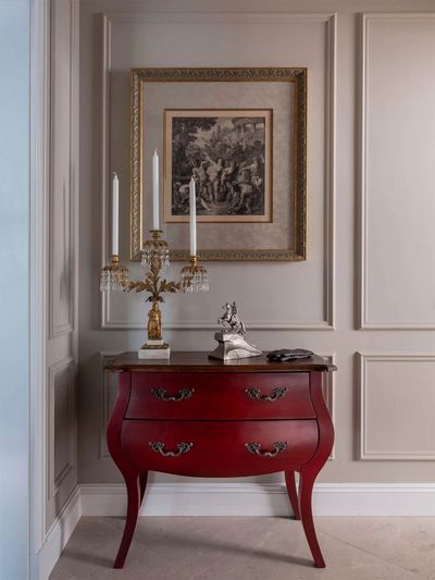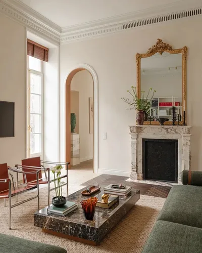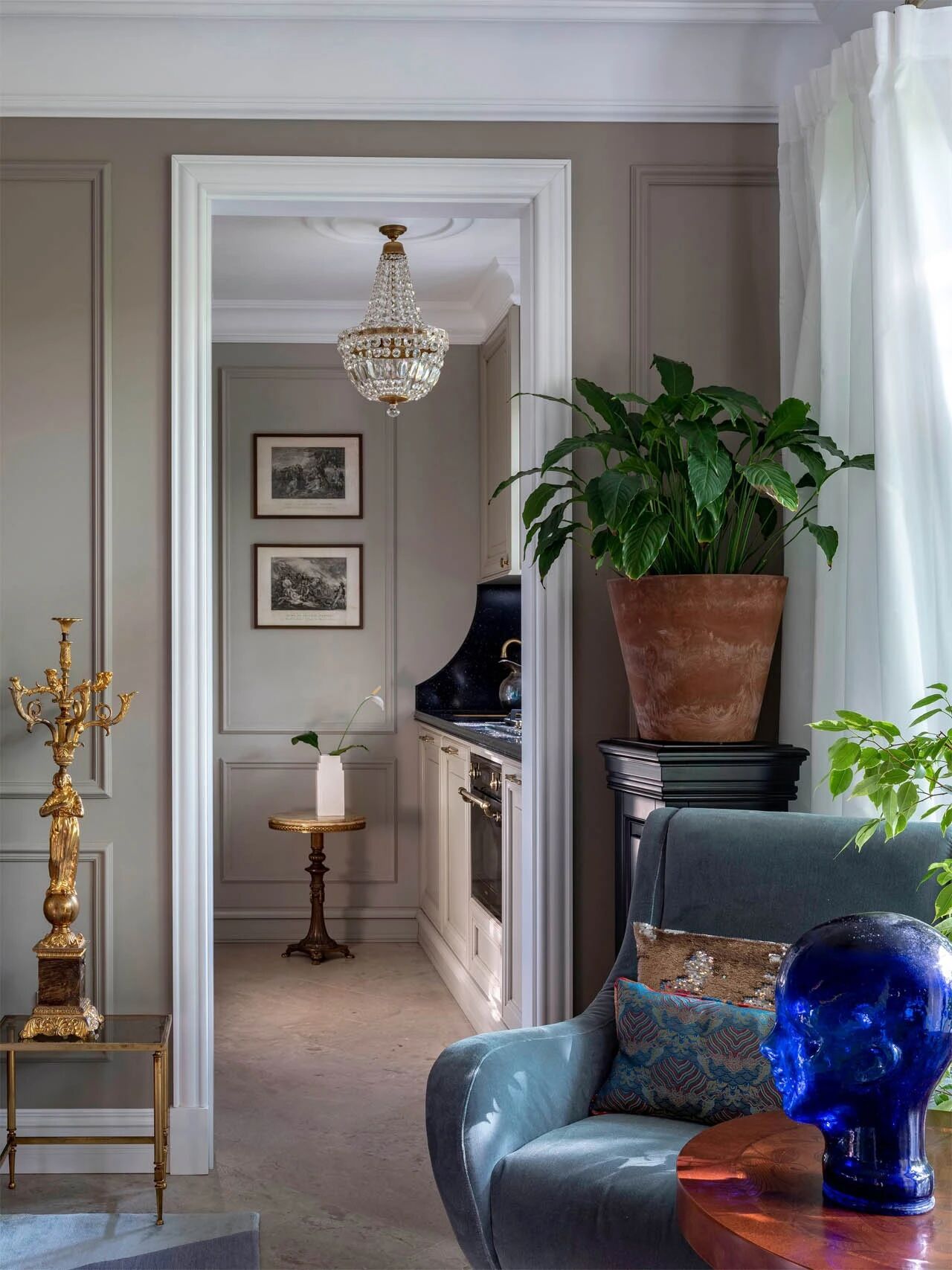 设计师决定将卧室、更衣室和厨房隔离开来,并创建一个带壁炉的正式客厅。室内装饰变得非常电影化,这很大程度上要归功于复古和古董物品。