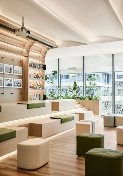 Shared reading, office, seminars, conferences and small theaters coexist here. The fun leaf-shaped stools, inspired by forest fallen leaves, bring a natural and relaxed atmosphere through free combination. The diverse style embraces infinite possibilities, endowing the space with vivid vitality.
