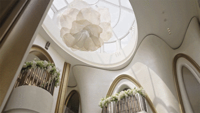 踏入门庭,一朵轻盈而盛大的玉兰花绽放穹顶,生活美学的聚场再此开启。