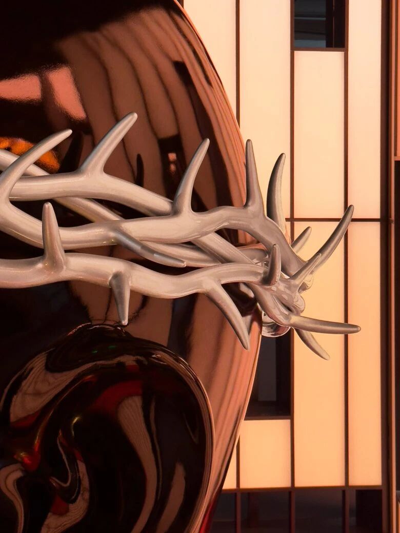 “头颅”上的尖刺,是王冠,又是枷锁,充满了对现实矛盾的讽刺。