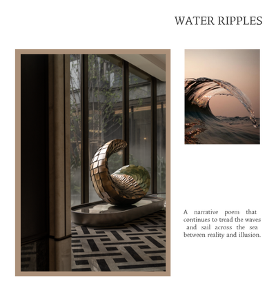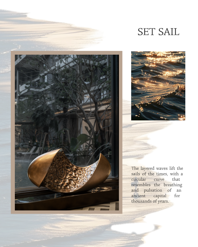 整体如还浪浪花浮起,寓意扬帆起航, 其内部构造水波荡漾,造型为无限循环既隐喻着长安古都的历史积淀,又暗合"心之所归"的情感共鸣。