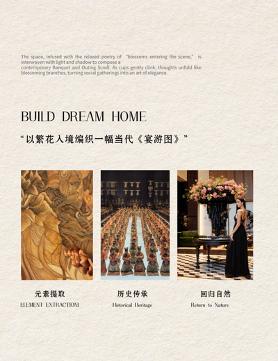 以空间为媒介,将盛唐的宴游雅趣、隐逸哲思与当代的社交需求、材质美学无缝编织。通过光影与空间序列构筑一处兼具文化厚度与现代精神的生活场域。