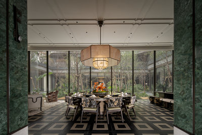 白昼流转,夜幕轻垂,艺术灯具悄然成为空间的灵魂。时光随光影更迭,在这片围合之地静静流淌,恒久滋养着恰到好处的温度与不俗的格调。