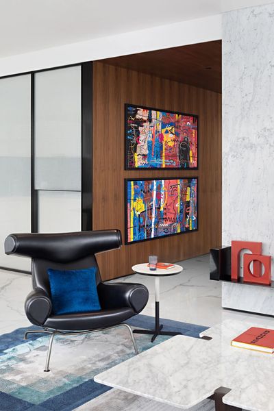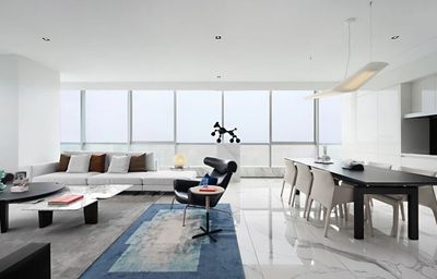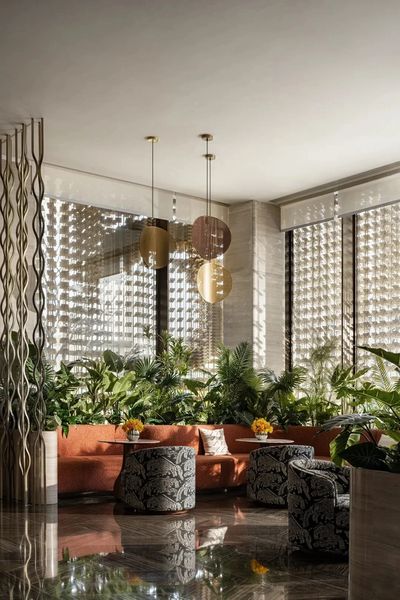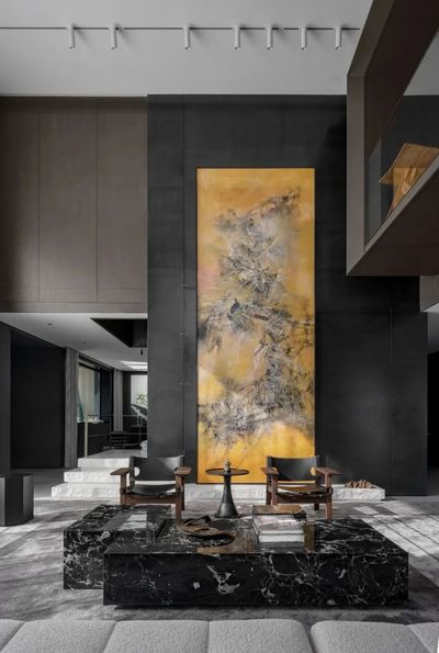 设计师以“酒店式落客区”为原型,打造业主专属的地下入户门厅,通过石材拼花、金属收口与灯光氛围的精密计算,将归家动线分解为“仪式前奏-核心体验-情绪收束”三重节奏,让归家动线成为一场“私人订制”的仪式盛宴。