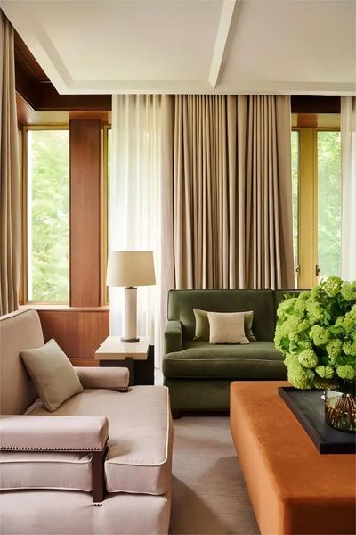 他们在墙面与地面选用柔和石材与浅木色调,弱化了时间的急促感。25米长的泳池位于核心位置,以极简的体块与柔和光源,让水面成为“安静的镜子”。