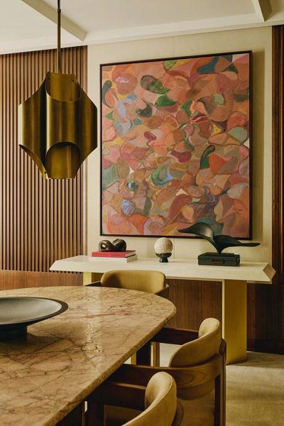 更为隽永动人的是,空间内大约有来自全球100种石材被细致打磨,与暖色调配色和金色阳极氧化铝点缀相互辉映,既体现建筑立面的庄重,又流露出一种永恒优雅与生活温度。