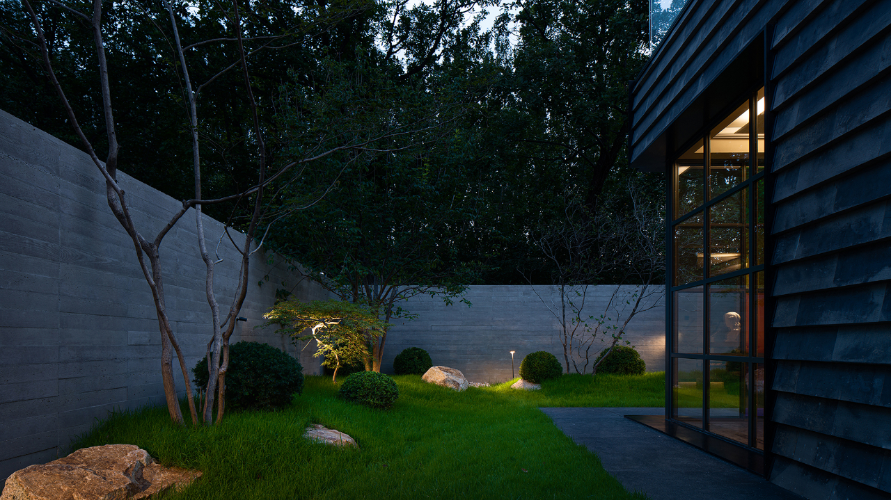 庭院夜景照明设计以“极简光影,静谧趣意”为核心理念,旨在通过精炼的照明语言,构建一个宁静而不失生动的夜间庭院空间