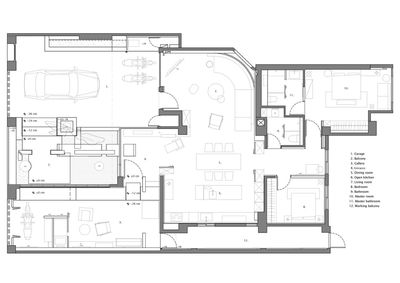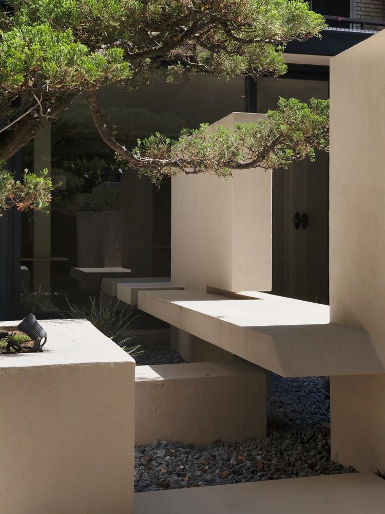 原有花园中新增了一道适度尺度的结构墙,巧妙地分割景观,为室内营造出更私密的庭院视角。