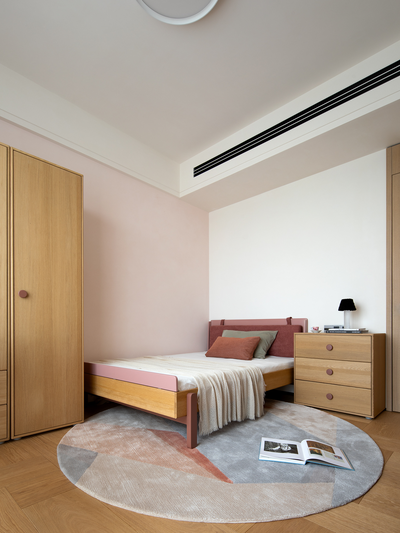 本案居住者是一个四口之家,设计师在卧室空间中,不仅着眼于功能与舒适,