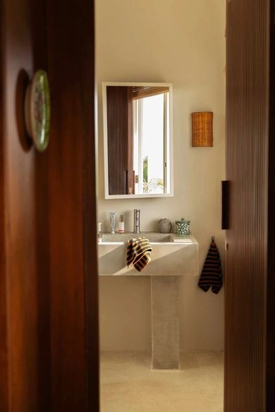 从每一扇窗望去,稻田、棕榈与远山构成日常风景。屋内的光线设计尤为独特——浴室上方的天窗可见飞过的风筝与暮色的云影,使日常仪式充满诗意。塞蒂亚万以“流动性”为核心设计语言,让空间成为情感与社交的延伸。米露与戴维热爱与朋友、艺术家共度时光,因此住宅设有多个可对话、创作与休憩的角落,营造出温暖而包容的氛围。