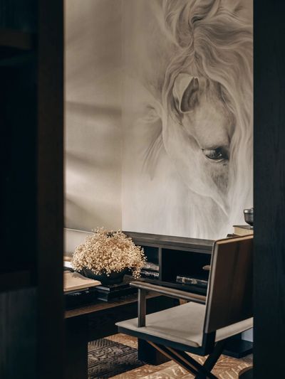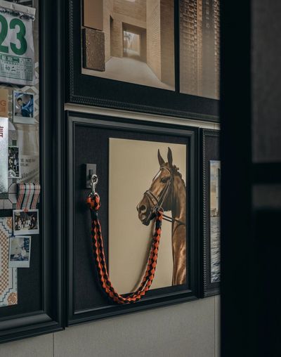 在香港的賽馬文化中,衝線的頭馬會被授予紅黑繩標誌。“拉頭馬”更蘊含着一層深遠的吉兆寓意,它代表着好運降臨、勝者加持,也寄託了人們對“拔得頭籌”、“贏得彩頭”的美好願景。我們將紅黑繩元素融入藝術陳設中,既致敬了賽馬精神中競逐與信念的力量,也體現出CCD始終秉持的敬畏之心與進取之志。