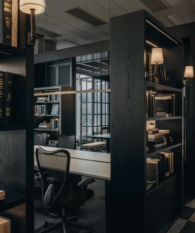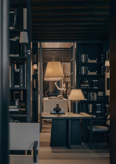 大幅書架取代傳統隔牆,形成“屋中屋”的敘事結構,在豐富空間節奏的同時,也賦予其強烈的建築敘事感。