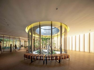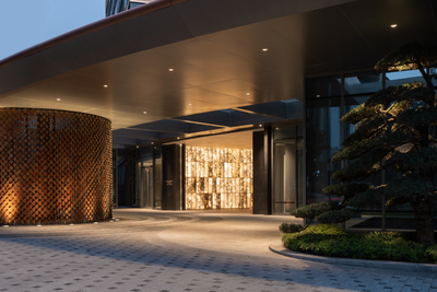 以对称平衡的仪式大门作为中心,内凹延长入口玄关的轴线