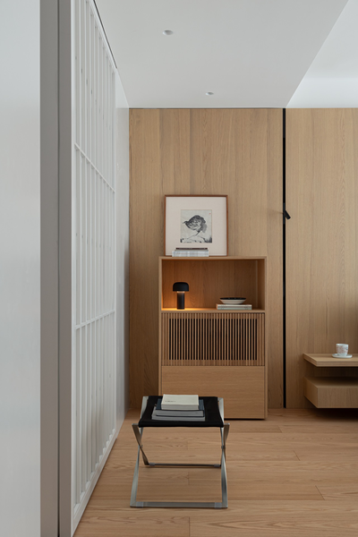 在卧室空间里,开始了一段特殊的旅程,向客户的自然主义致敬,精心挑选的展示柜,展示了简洁的线条和温润的色彩。