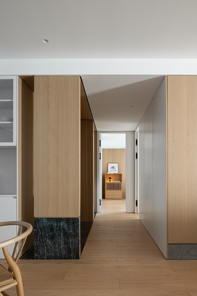 通过动线的开合与界面的暗示,让空间具有流动性的同时,保有居所的安全感,使生活和情绪能够在开放与私密之间自然切换。