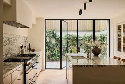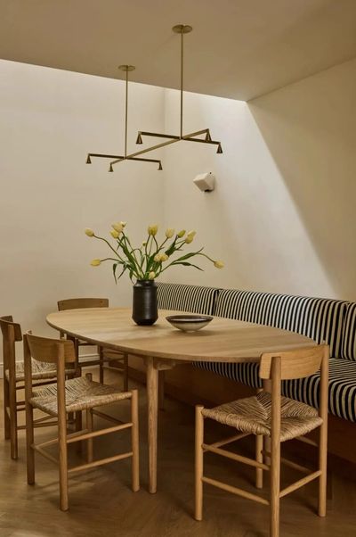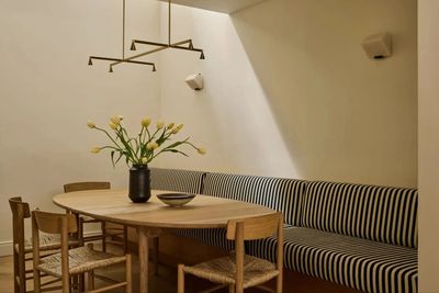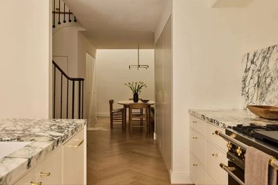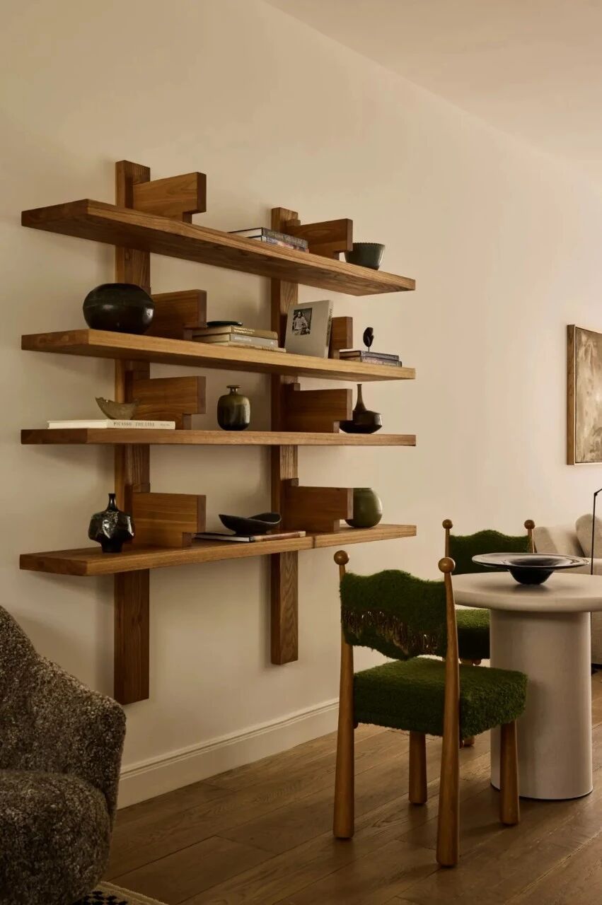 设计的核心在于平衡家庭生活的温度与城市住宅的理性结构。主层的布局开放而流畅,厨房、餐厅与起居区彼此相连,以自然光线贯穿空间。选材上,工作室延续其一贯的温柔触感与物质性表达:浅色橡木、石灰抹灰墙面与手工金属细节在不同表面间形成层次分明的对话。家具与艺术品的选择体现出设计师对“情感秩序”的追求——复古与现代、朴素与精致在同一画面中并置而不冲突。