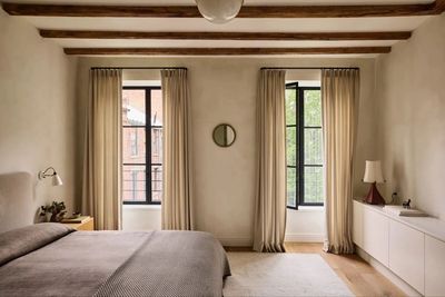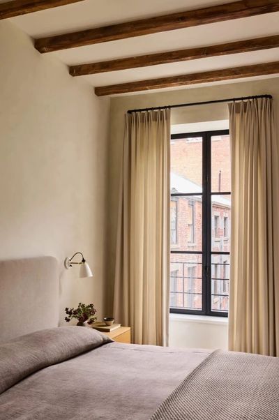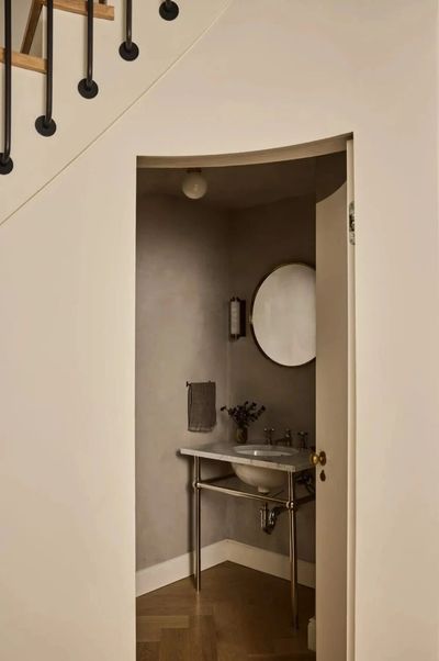卧室与私人空间则以柔和的节奏展开。主卧采用温润的米色与乳白调,搭配纺织感极强的织物与低饱和度木饰面,营造出静谧的避世氛围。浴室延续建筑的历史语言,以大理石与黄铜细部呼应传统工艺之美。整体氛围既克制又饱含情感,使居所呈现出理性设计与人文关怀的共生。