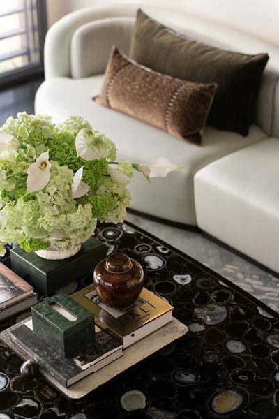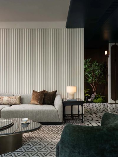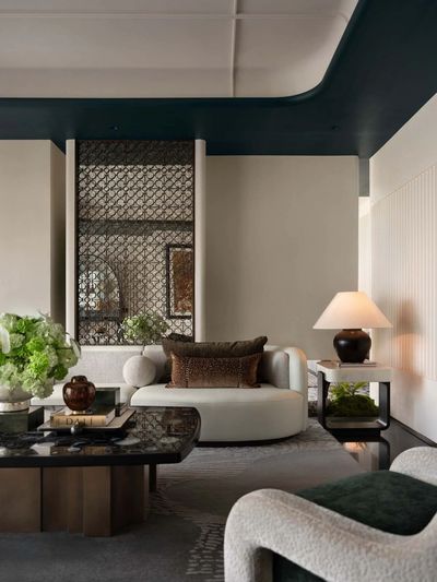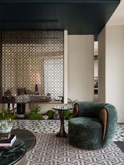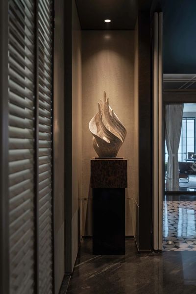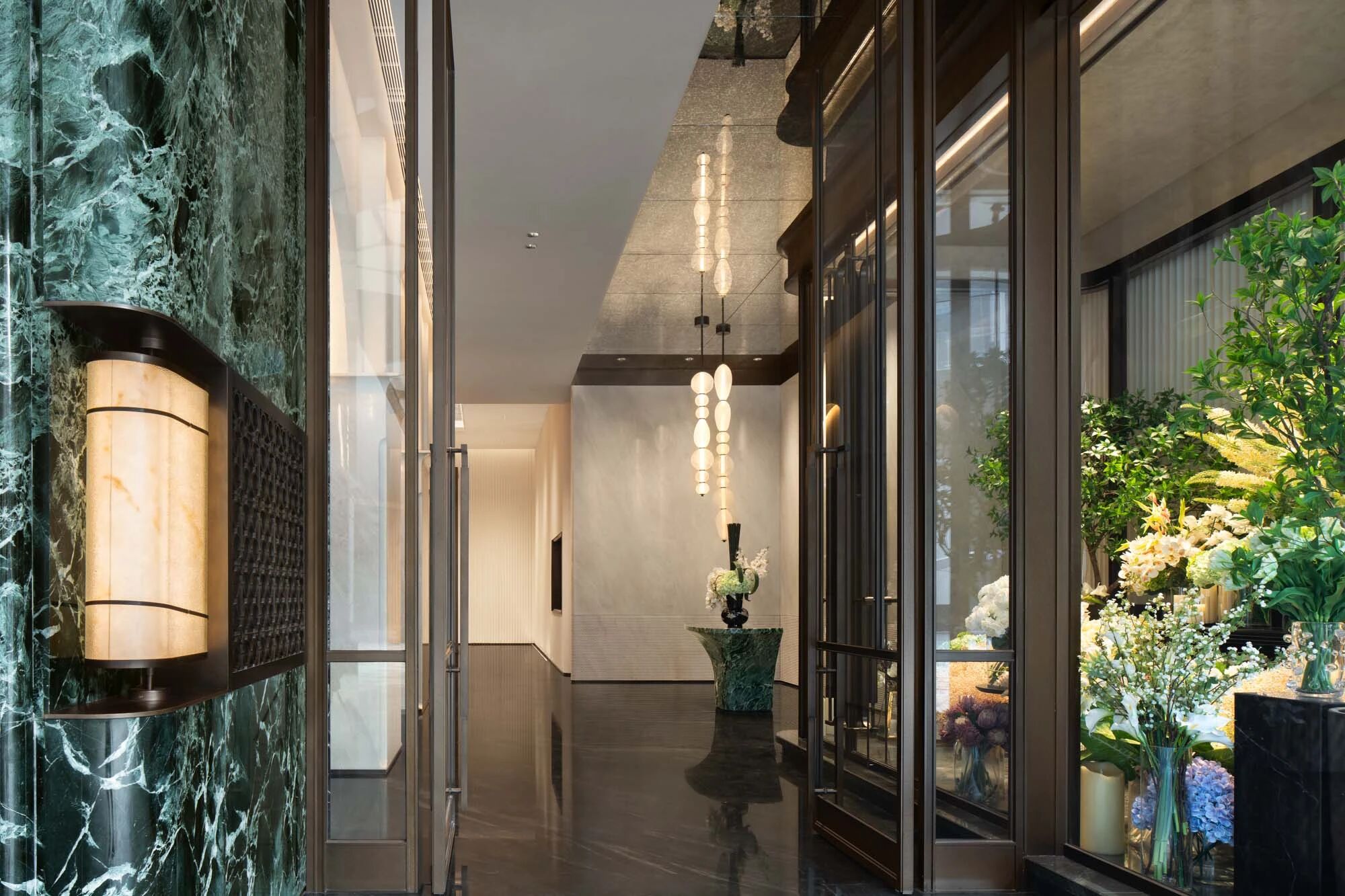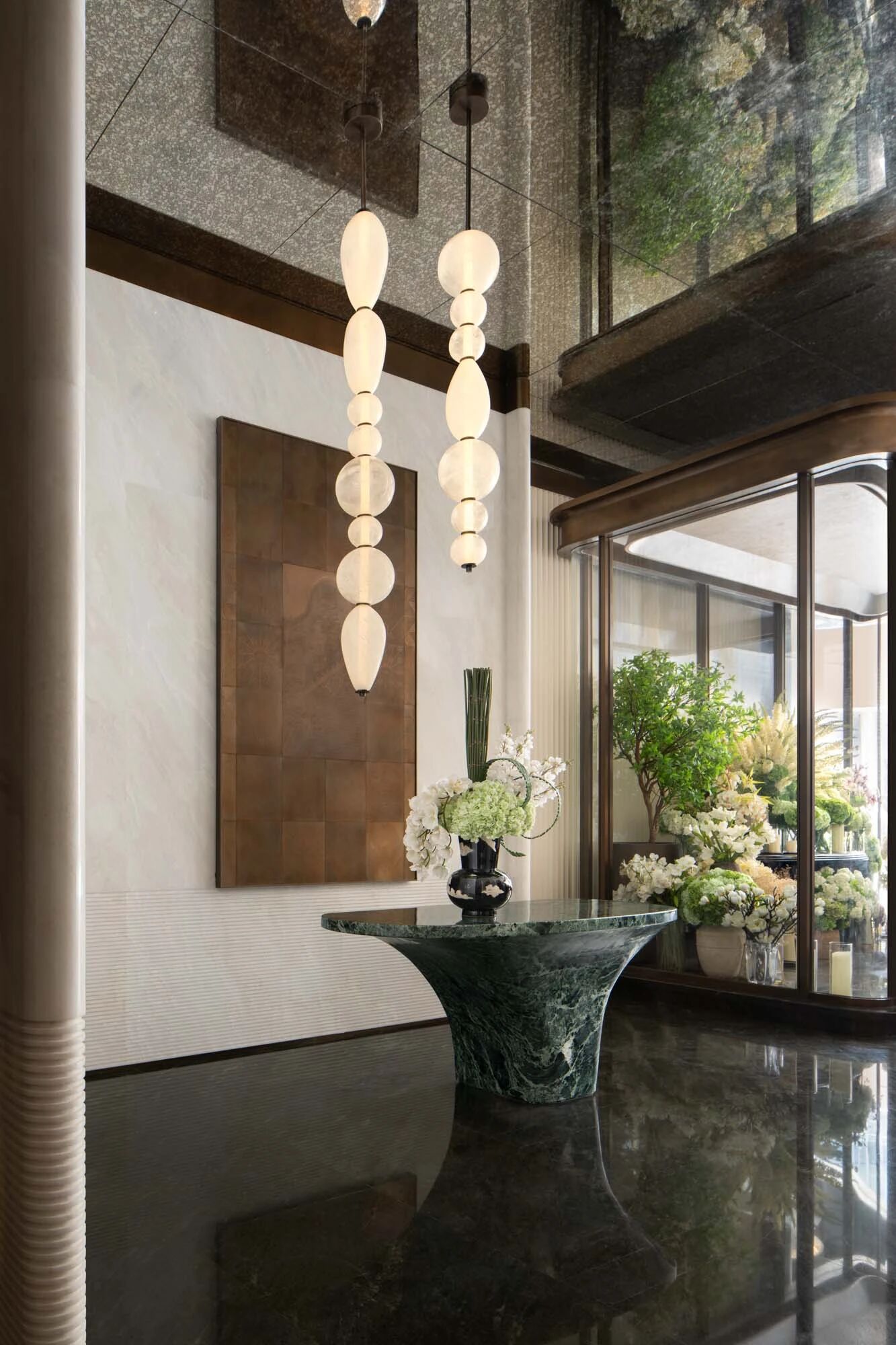 绿色奢石作为空间主调,其肌理温润如玉,光影斑驳时,仿佛整座空间都在呼吸,荡漾着一池深邃而静谧的碧意。