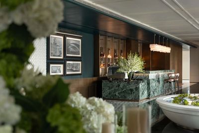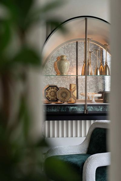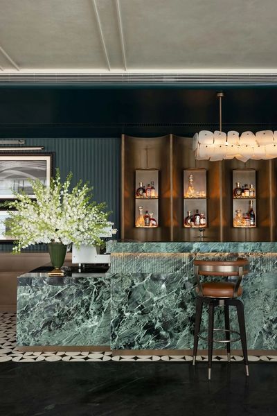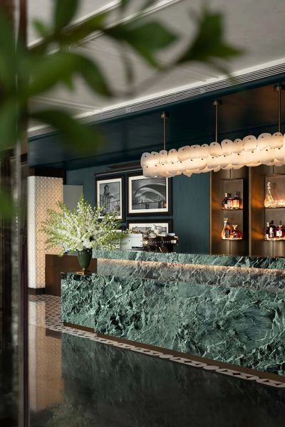 水吧区域,玉绿在玻璃与石材间流动,晕染出通透灵动的气质。