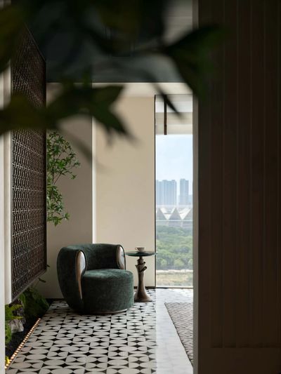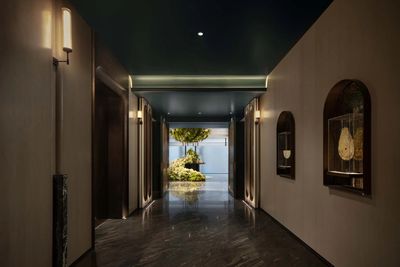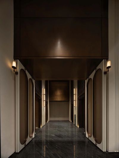 空间起笔于一座岭南圆门洞的解构与转译。极简的拱形门廊,以当代设计语言写就东方礼序,在“入门”与“入府”的仪式感间,完成从尘世到心境的过渡。