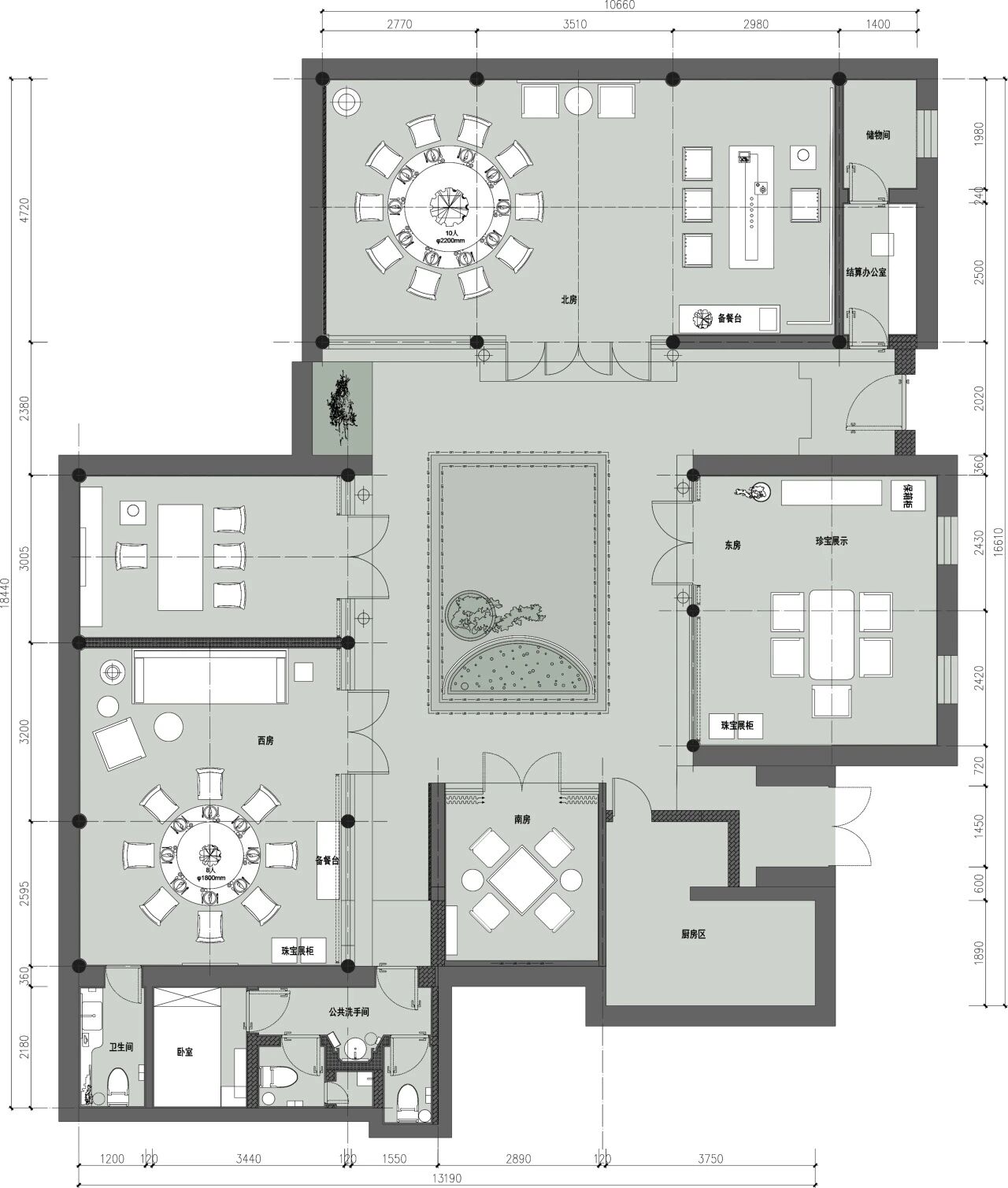 设计师将业主的色彩癖好,与东西方色彩哲学熔于一炉,让四房成四色,在四合天地里演绎一场诗意的功能叙事: