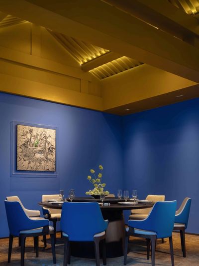 卸下祈年殿蓝的神性,成为南房的深邃注脚。如她衣间的藏蓝,在南面的空间里铺陈出一种静谧而现代的气质——那是西方三原色的时尚感,与东方“水之包容”的温柔共生。