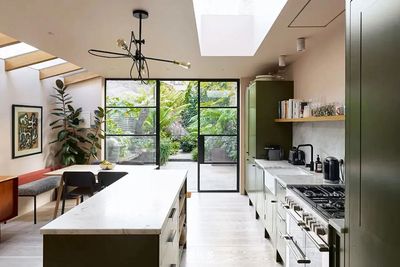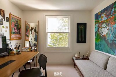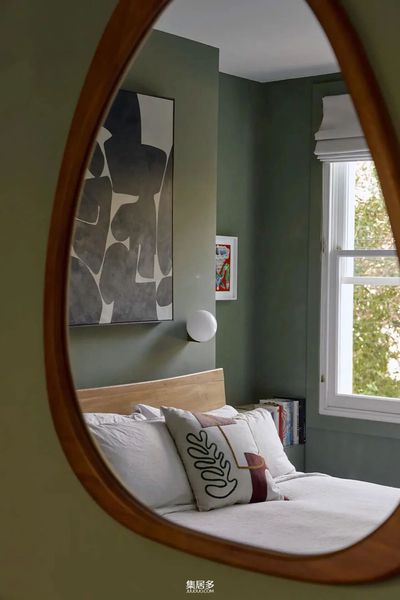 空间的巧妙布局更显设计师匠心。厨房与后院通过大面积的玻璃门相连,烹饪时抬眼便是满目绿意;顶层那间以绿色为主调的卧室,仿佛将整个花园的生机都收揽其中。当夜幕降临,百叶窗过滤后的月光与壁炉的暖光交织,在赤陶墙面上投下温柔的阴影,让人不禁想起简·奥斯汀笔下那些充满生活气息的英伦家庭。