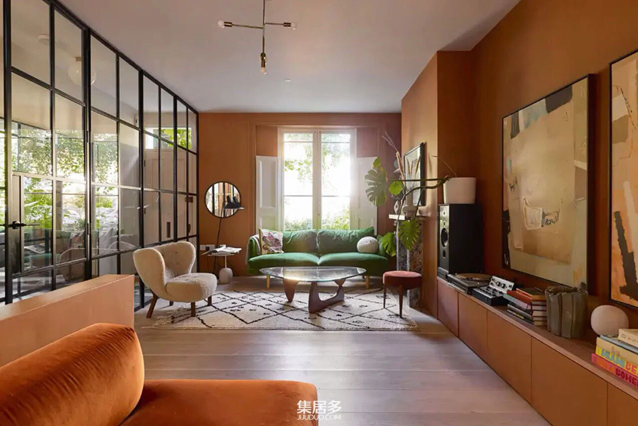 在这座伦敦联排别墅的客厅里,一场跨越时空的设计对话正在悄然上演。赤陶色墙面如大地般沉稳,与通透的玻璃隔断形成微妙对比,将斯堪的纳维亚的极简主义精髓注入空间。当午后阳光穿透玻璃,在赤陶墙面上投下流动的光影,整个空间仿佛被赋予了北欧特有的宁静与通透。