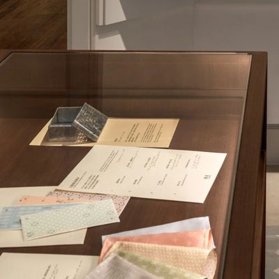 试想这样一个场景:当一切喧嚣都被挡在一层淡淡的香气之外,柔和的或强烈的光线从沿街的落地窗渗透进来,伴随着窗外往来匆匆的行人和游客......你正站在有着细腻木纹的长柜前,透过玻璃看到那些属于香港人生活印记的纹样与包袱皮。店员用有着特别纹样的包袱皮把你精心挑选的香氛包裹起来,用花笺纸写下寄语、拓印上纹样。脚步在这里自然慢了下来。