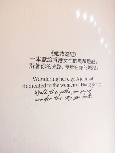 在店铺的墙面上印着这样一句话:《她城游记》,一本献给香港女性的典藏游记。沿着你的来路,漫步在你的城池。