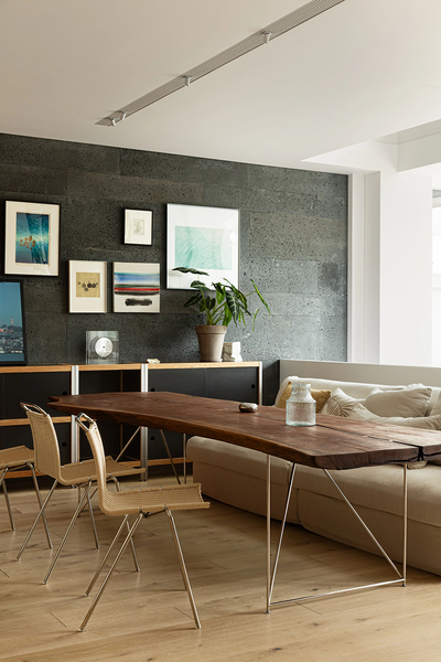去风格化的客餐厅设计,多元单品之间的微妙联系。进门就能感受到木作所框的生活场景,有序的功能和无序的舒适在此间缓慢诞生。