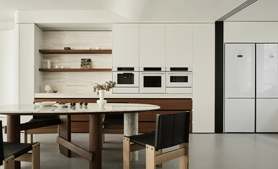 空间呼吸感,采用横向与纵向的开放式布局,让负二负一和一楼连贯互通,形成通透的整体,这不仅方便了烘焙时与家人朋友的互动,更让空气与光线得以自由流动,使家成为一个能自由“呼吸”的有机体。