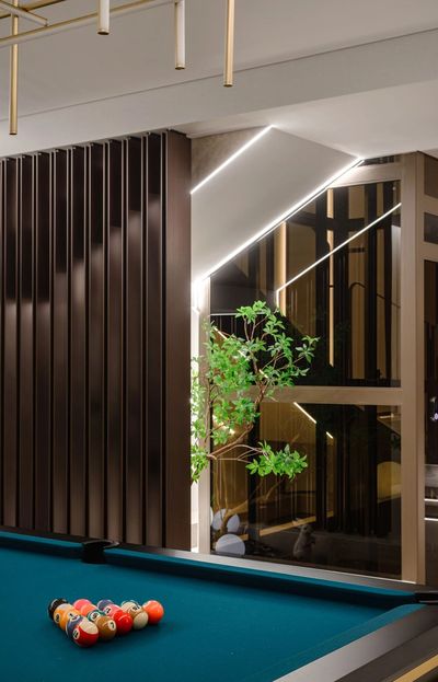 负一层地下室打造休闲(麻将区)、娱乐(台球)、景观、收纳等区域,满足多样需求,让地下室从单一储物变身休闲娱乐生活空间。