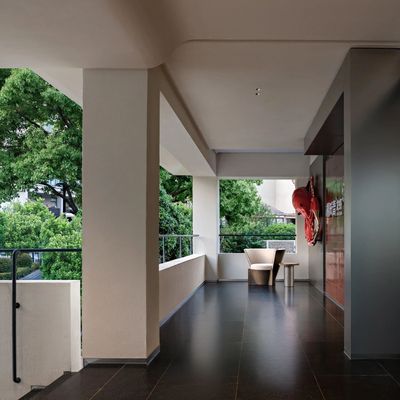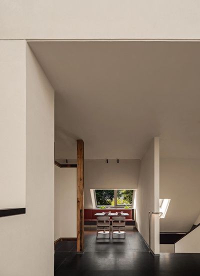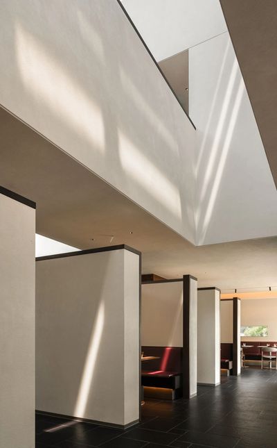 得益于独栋建筑的自由度,设计师大胆创建了一个具有鲜明视觉系统,结构关系丰富的空间。更加可贵的是,通过对自然光和自然植被的巧妙利用,整栋建筑也是一个可以从里向外感受自然的盒子,原本平常的户外环境通过与建筑互构而变得值得玩味,室内则随着时间推移呈现出流动的生命样态。