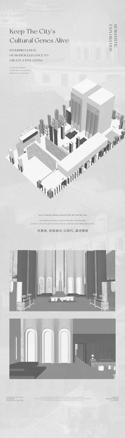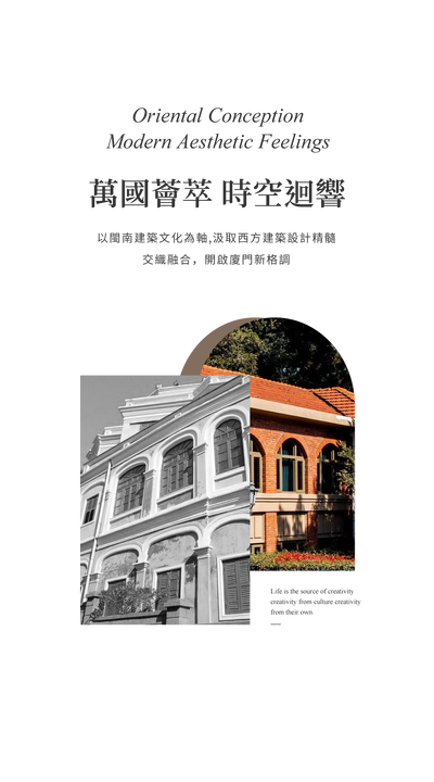 以簡化的拱形線條、錯落的幾何分割或材質肌理的疊奏,暗喻廈門萬國建築群中古典柱廊與摩登立面的共生關係。光影在縱向延伸的立面褶皺間遊走,既呼應了歷史建築的韻律感,又以留白手法啟動了當代空間的記憶錨點。